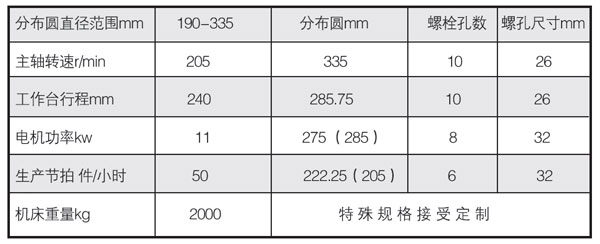 本機主要用于汽車車輪、制動鼓生產對螺栓孔進行鉆孔、锪孔加工的多孔專用機床,可一次性完成各種規格螺栓孔鉆、鉸、锪孔加工要求本機為立式結構,設計合理,機床穩定性好,定位準確快捷,加工精度可靠。